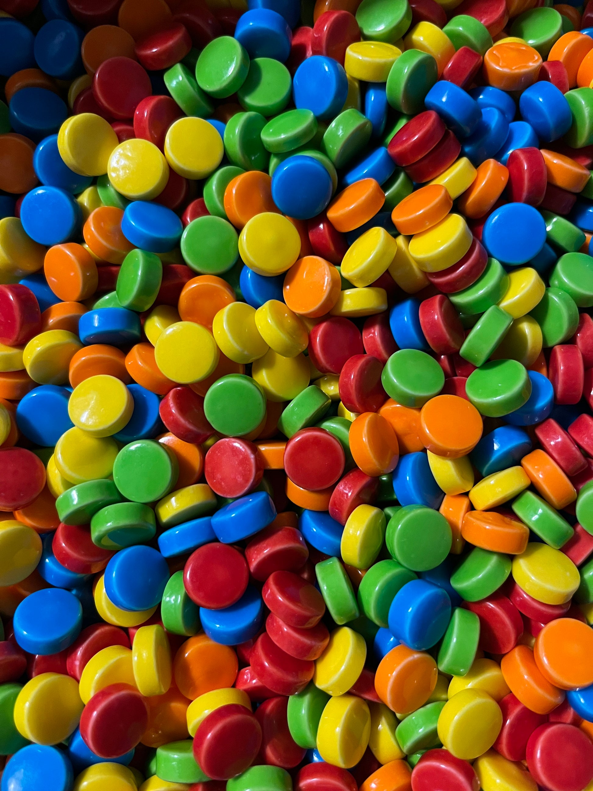 Ingredients: Dextrose, Citric Acid, Calcium Stearate, Tapioca Dextrin, Confectioners Glaze, Carnauba Wax, Artificial Flavors, Artificial Colors (FD&C Red 40 Lake, Blue 1 Lake, Yellow 5 Lake, Yellow 6 Lake, Red 40, Blue 1, Yellow 5, Yellow 6). Milk and Soy may be present. Contains a bioengineered food ingredient made from U.S crops.