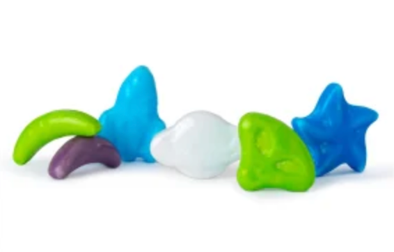 Ingredients: dextrose, maltodextrin, magnesium stearate, artificial flavors, artificial colors, FD&C Yellow 5, Red 3, Red 40, Blue 1, Titanium Dioxide, Mica based pearlescent pigments, carnauba wax.